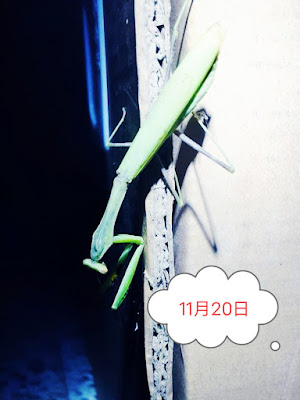 這是被發現倒立往生第17天後,即12月4日的螳螂。